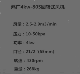 采購:4kw回轉(zhuǎn)式風機(風量2.5-2.9m3/min)